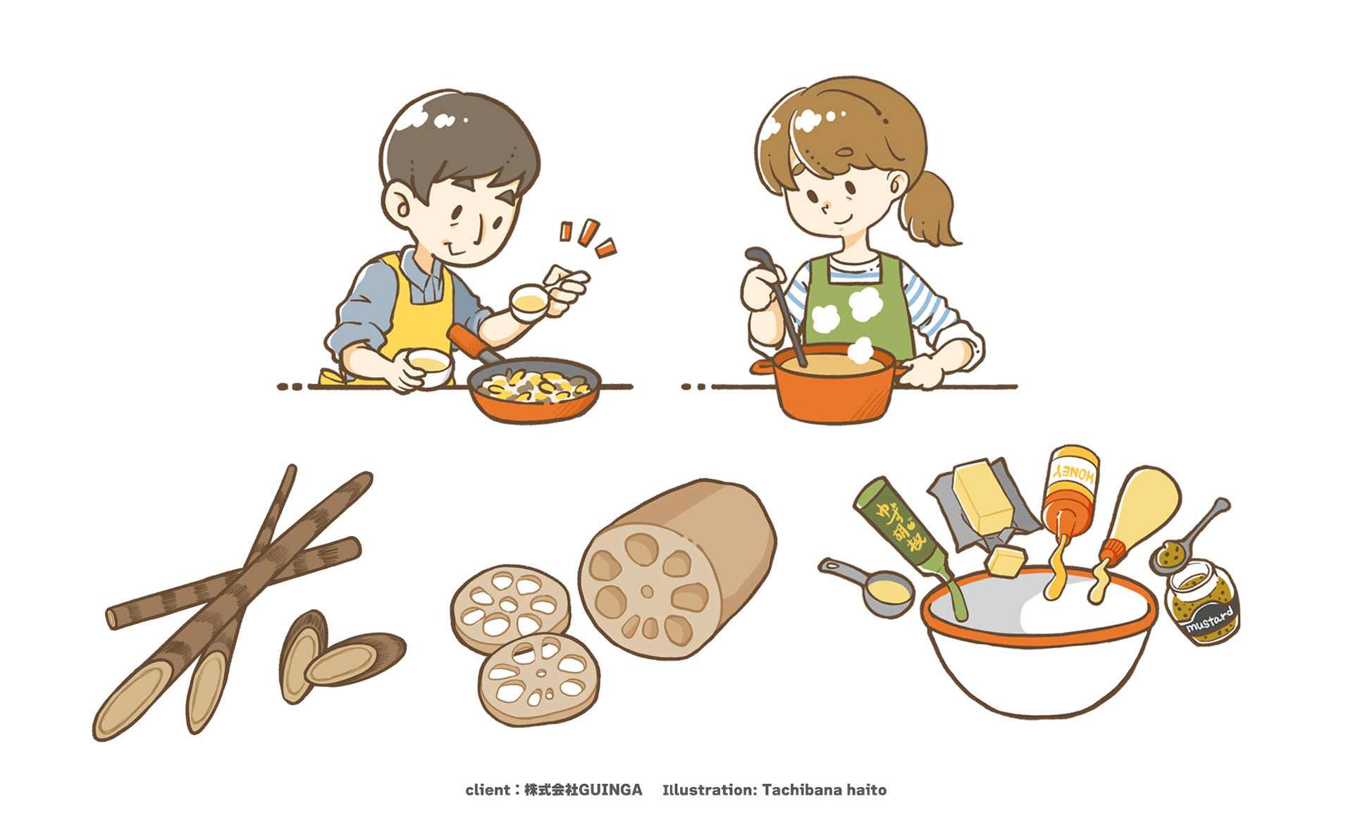 食に関するメディアサイト「TABLEVA」さまの記事「根菜料理のレパートリーを増やそう」にて使用するイラストを制作いたしました。