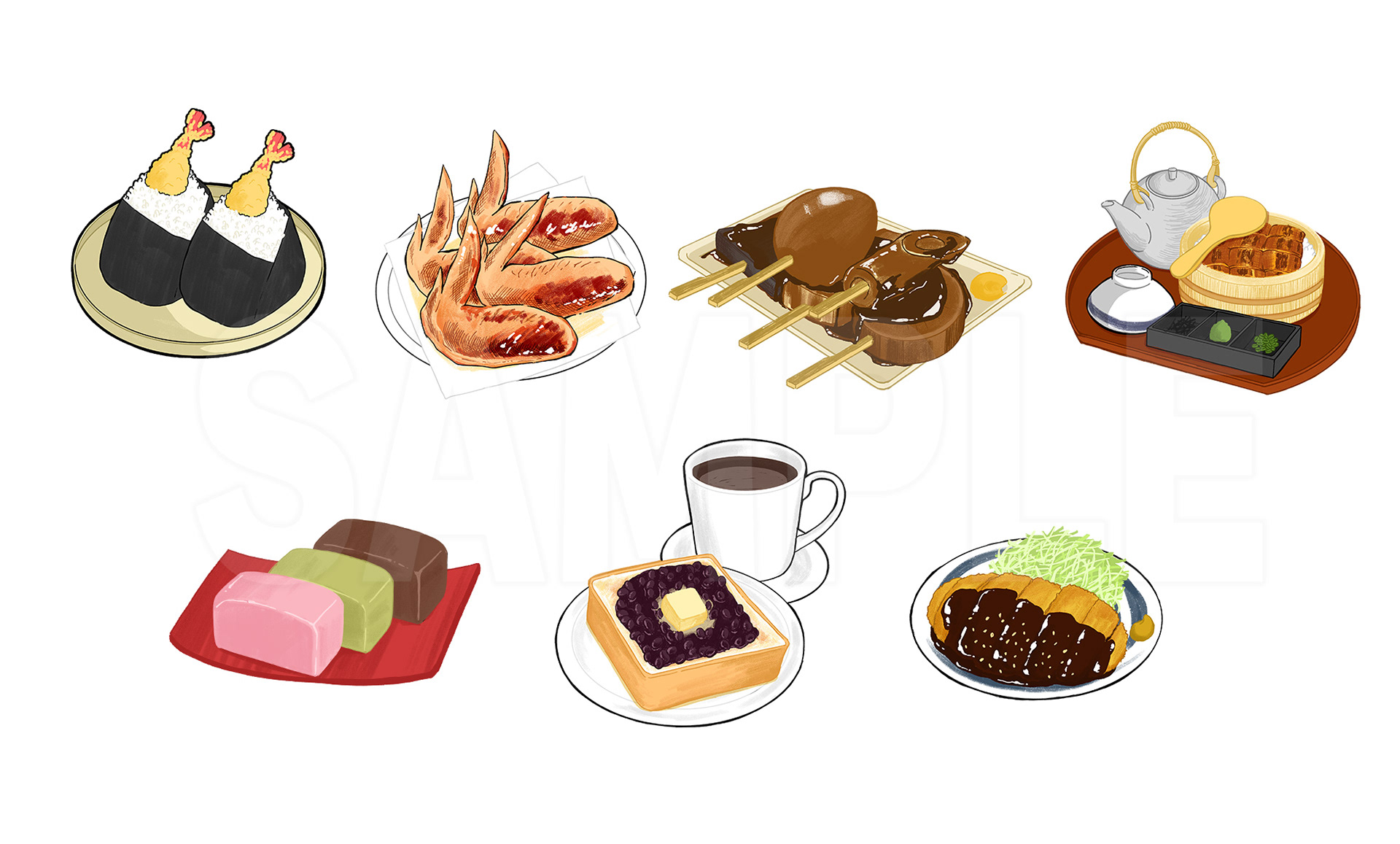 名古屋市とのコラボ企画にて販売されるグッズ向けに、名古屋名物の食べ物を7点制作しております。