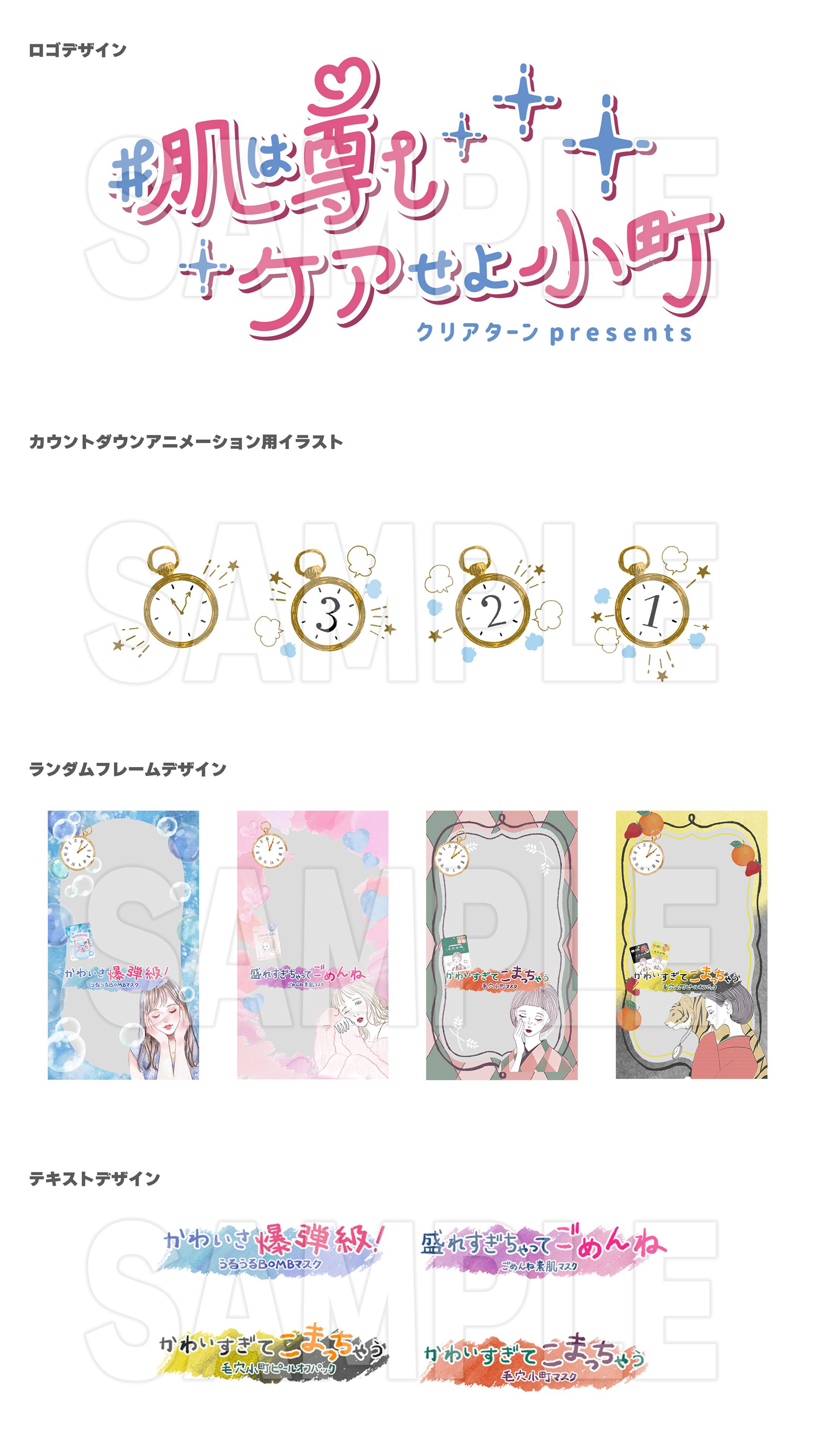 KOSEクリアターンのtiktokオリジナルエフェクトの一部イラスト制作、デザインをさせていただきました。