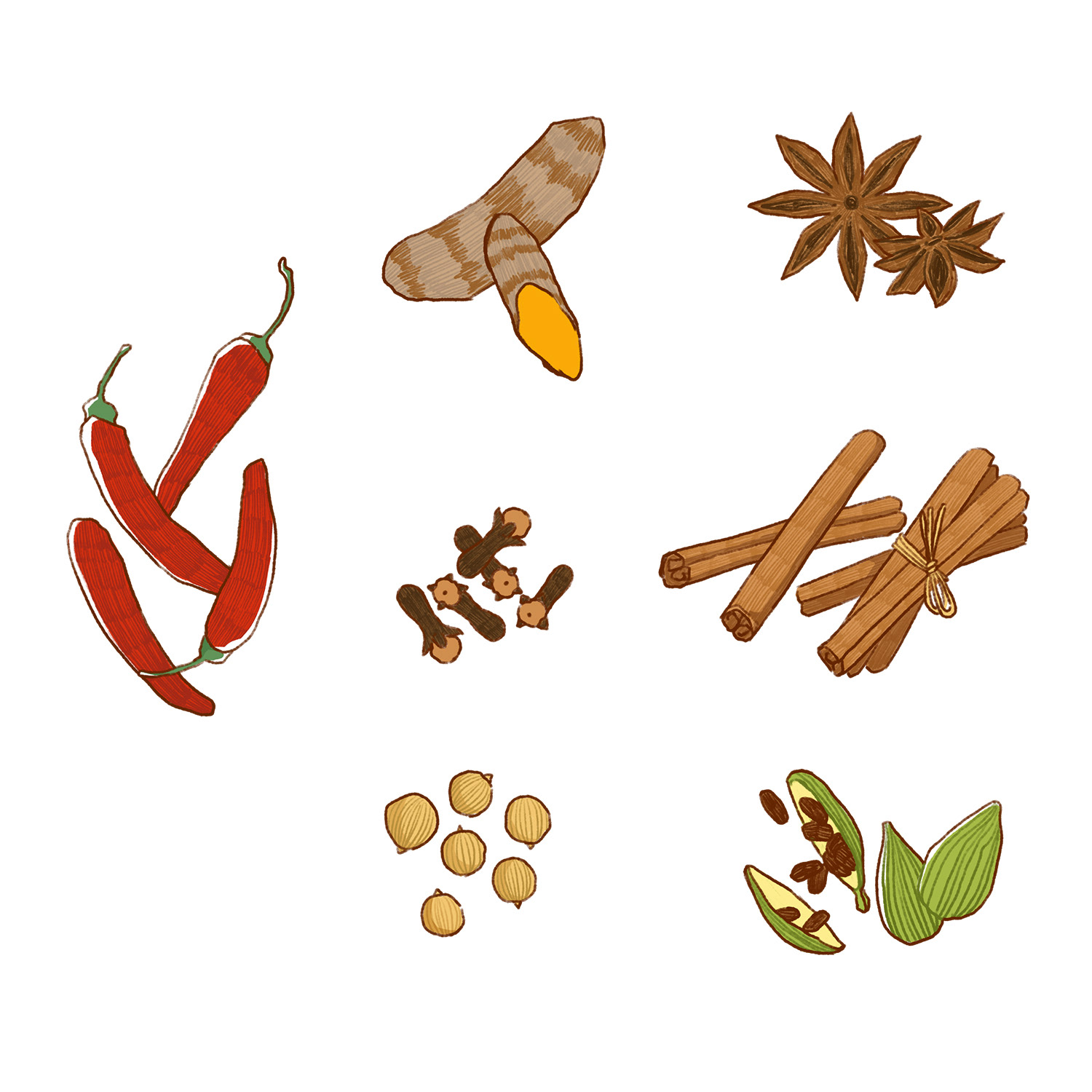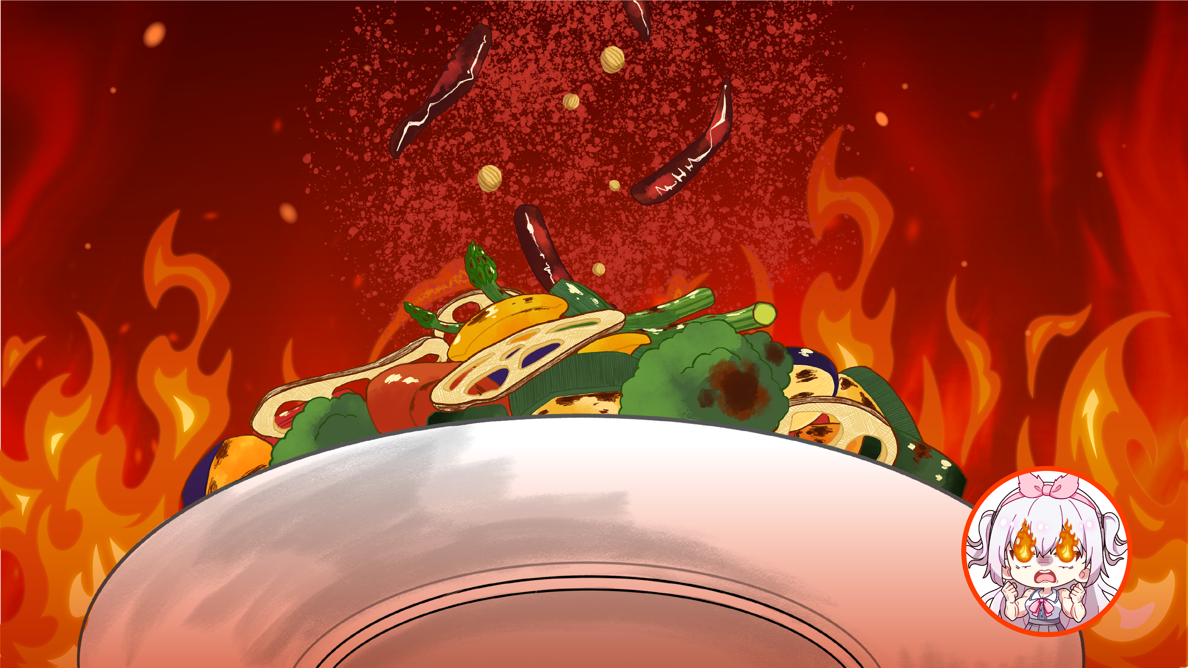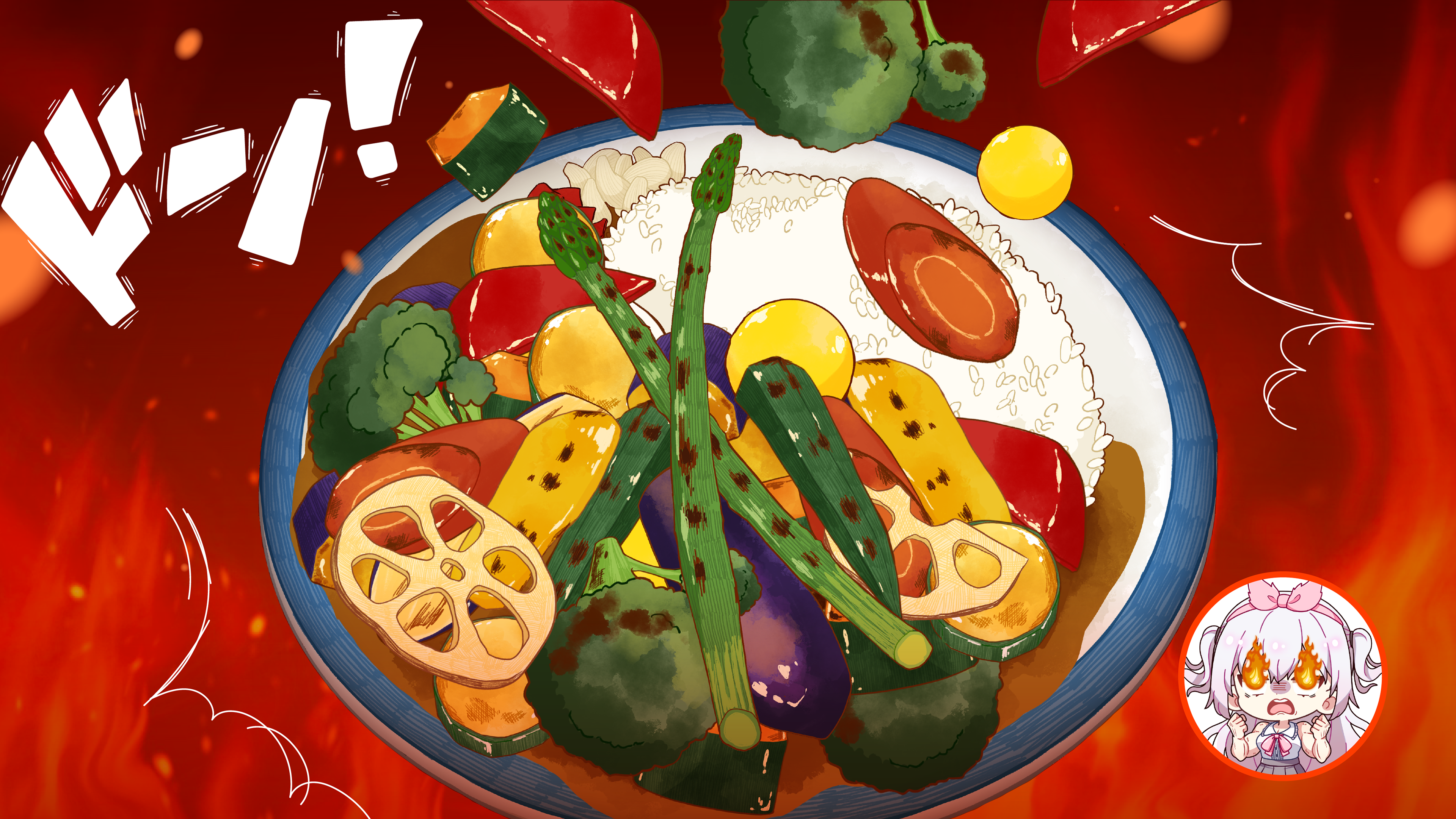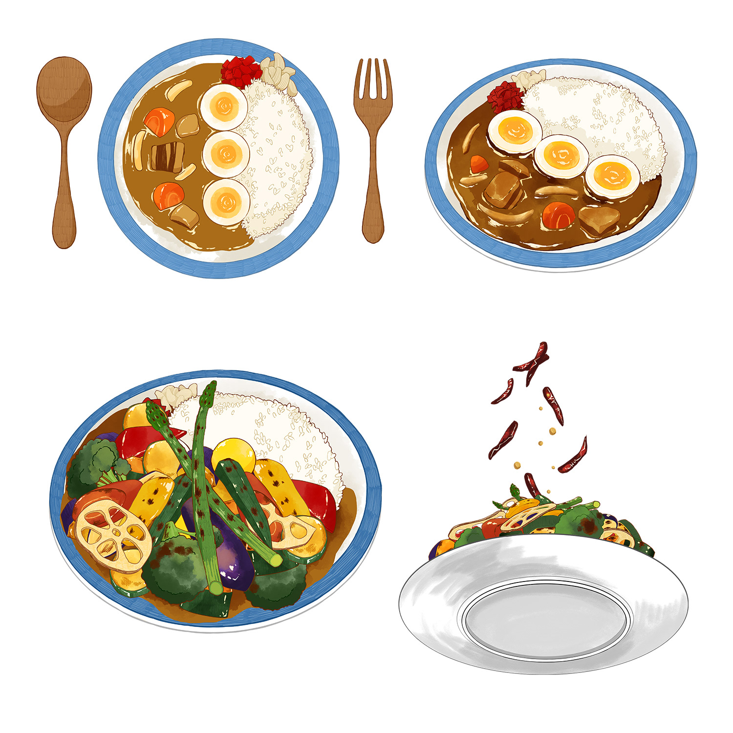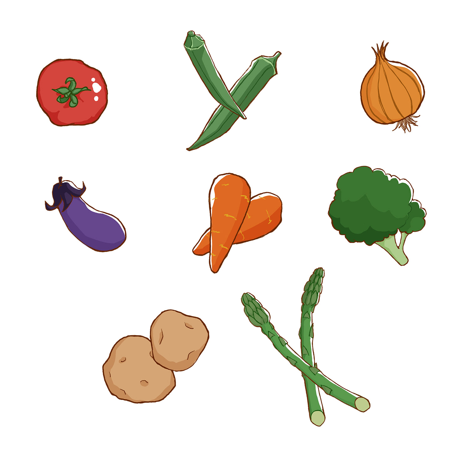 映像内に登場するカレーや野菜等の素材イラストの制作を担当しました。