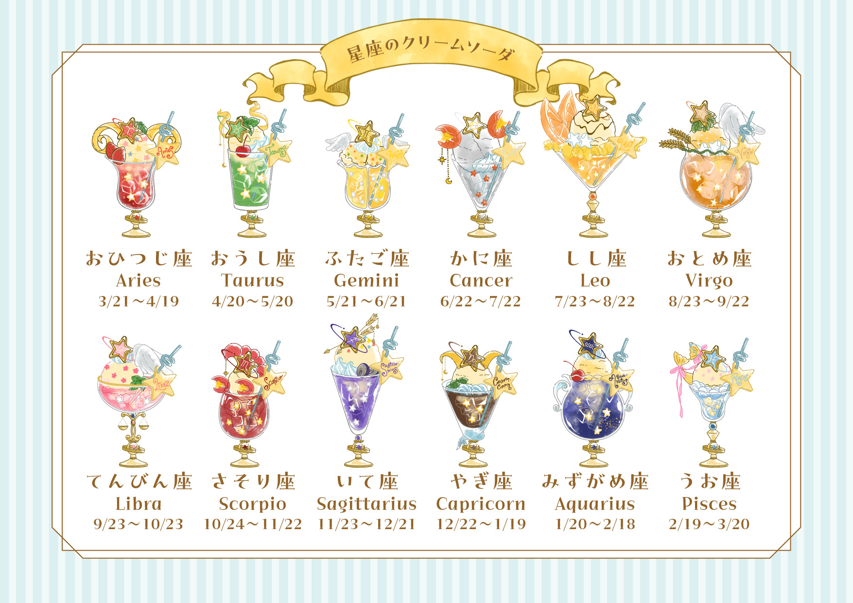 12星座をモチーフにそれぞれの星座の特徴をクリームソーダに