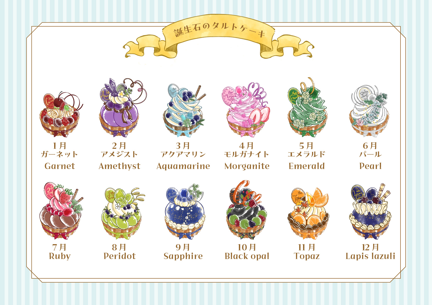 12ヶ月の誕生石をイメージしたタルトケーキをデザインしました。